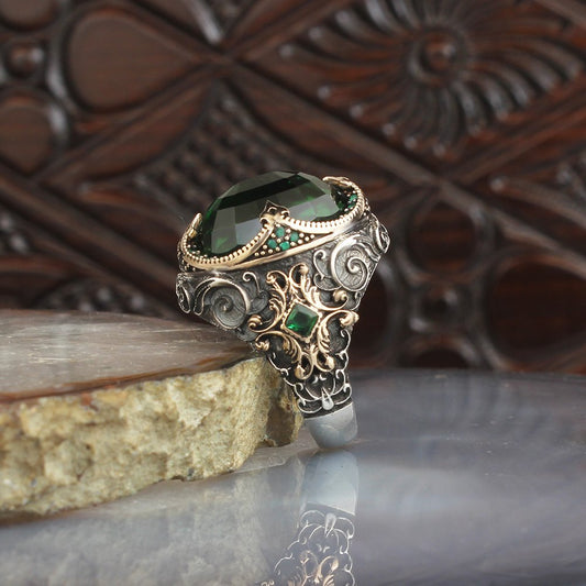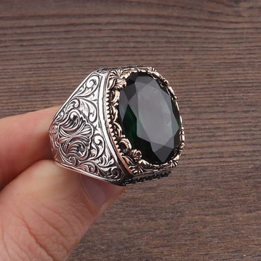 Aslan Simgeli Yeşil Zirkon Taşlı Yüzük