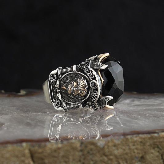 Aslan Simgeli Kristal Kesim Zirkon Taşlı Yüzük
