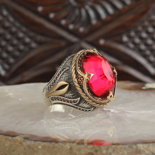 Aslan Simgeli Kırmızı Zirkon Taşlı Yüzük