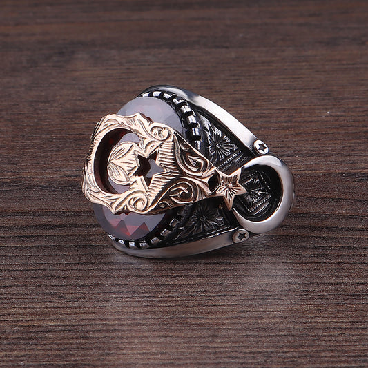Ay Yıldız Motifli Zirkon Taşlı Gümüş Yüzük